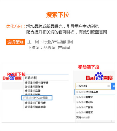 用户搜索指定关键词时,百度下拉框出现品牌或产品信息